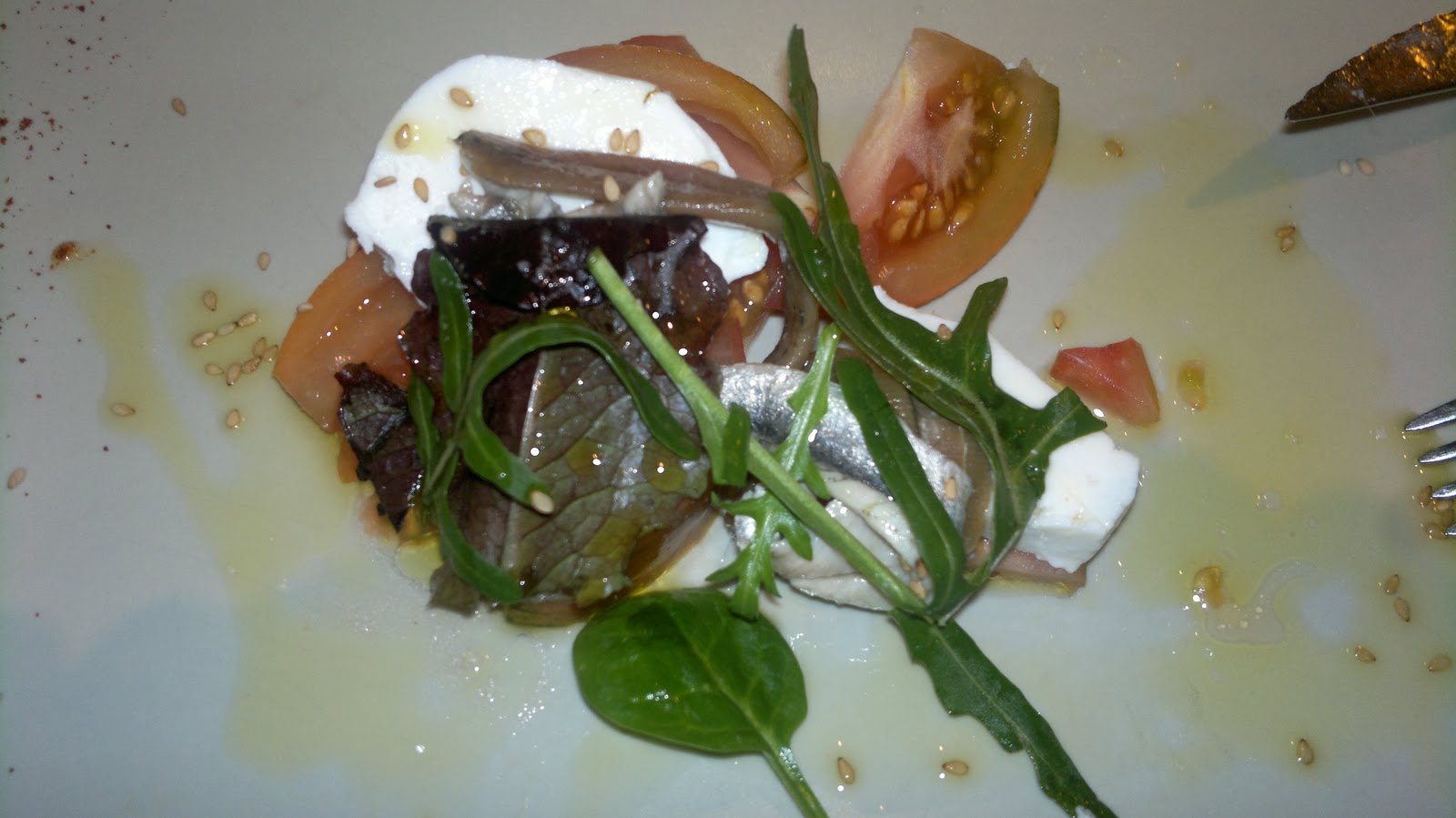 De primero podía comer la crema de zanahoria y el tomate con boquerones, anchoas y queso fresco (que fue el que elegí).